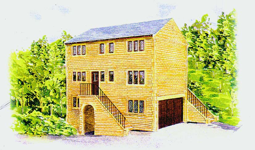 Ignore the trees - it's an artist's impression (there's actually houses a bit away either side and a hill behind)